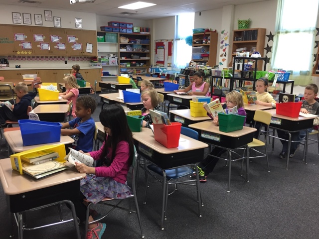 We are now in the 4th week of school and our students are well into their schedules! Here is Mrs. Jerdee's class reading books independently and at their level. Each of them has a book box that holds their favorite titles. Students work on increasing their reading stamina during the first month of school. Ms. Noack's class (2nd picture) is already up to 23 minutes of independent (and focused!) reading.